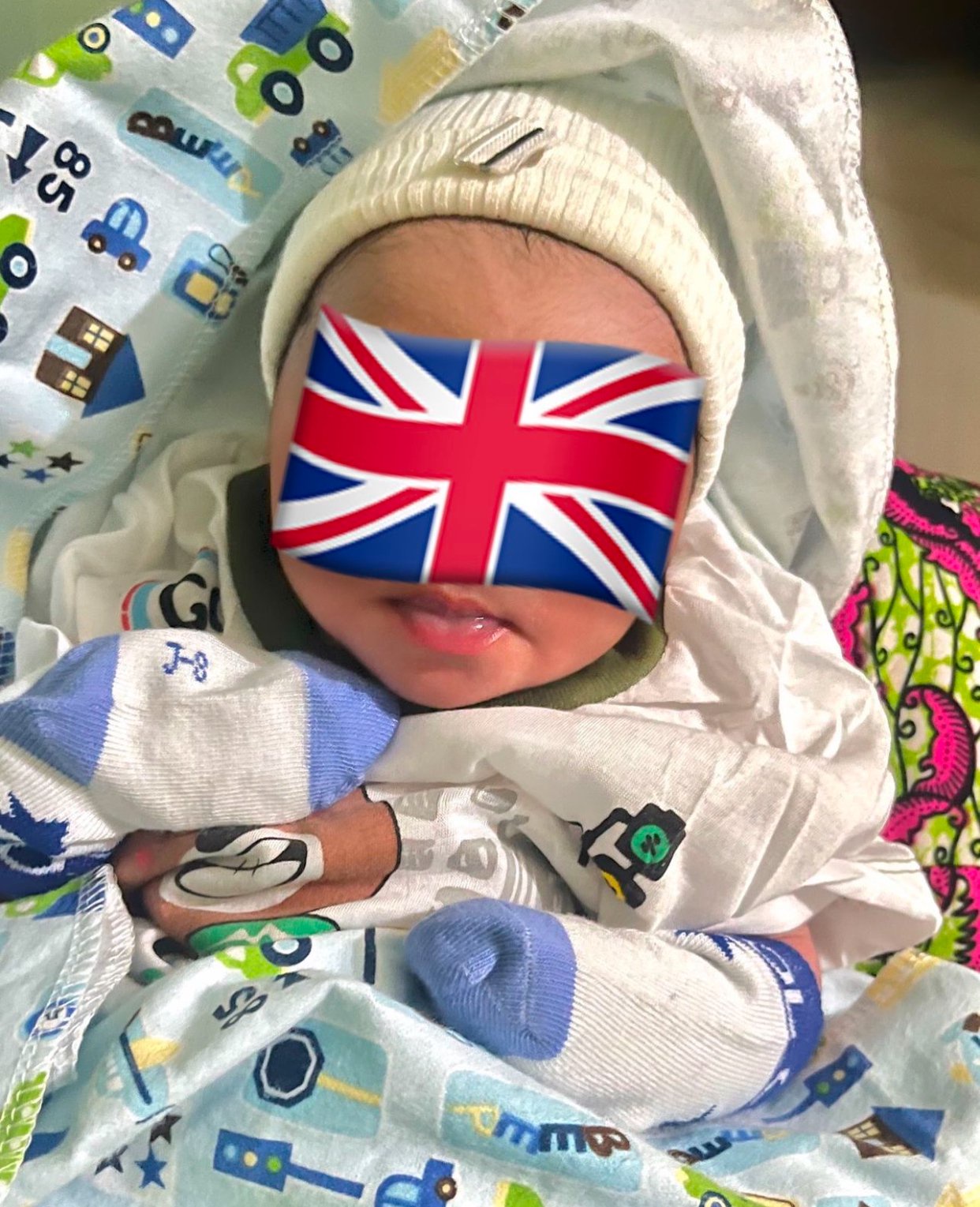 Destiny Boy also posted a picture of their newborn son but covered the child’s face with a flag emoji.